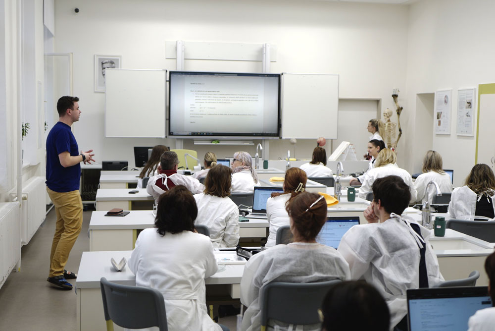 Setkání u nás na Mendláku se uskutečnilo ve čtvrtek 22. 2. 2024 od 14:30 v FL a následně v BL. Setkání vedli Bára Bitomská a Adam Šťastný. Na přípravě se podílela také Zdeňka Hanzlíková. Tématem byl B-Ch-F tandem, který mohli zažít také účastníci Učitelingu v Ostravě (uskutečnil se v pátek 16. 2.). Právě tam jsme se přesvědčili, že tentoworkshop zvládne každý, i když nemá přírodovědnou aprobaci. Účastníci absolvovali laboratorní práci Pitva oka. Měli možnost pitvat oko prasečí anebo kravské. Během práce ve dvojicích zpracovávali protokol, jehož součástí bylo pořizování fotografií, měření oka, provádění dílčích experimentů, abychom zjistili, jak člověk skutečně vidí. V protokolu se prolíná biologie s fyzikou i s chemií – důkaz přítomnosti bílkovin v čočce pomocí Biuretové reakce. Tato práce skloubí prvky badatelské výuky, CLIL (některé z otázek byly v angličtině), využití AI s ověřováním správnosti odpovědí z nezávislých zdrojů apod.